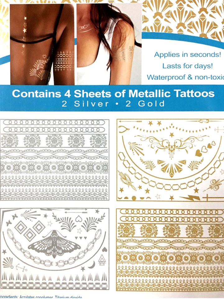 Temporary Gold & Silver Metallic Tattoos. Unique Designs.