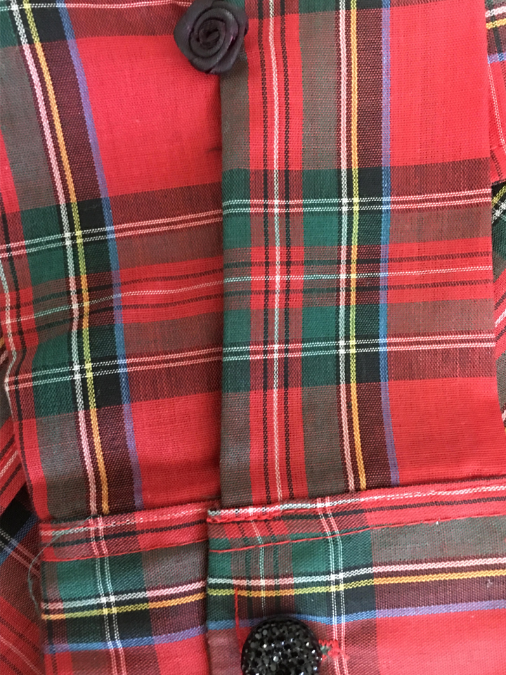Long-sleeved Red & Blue Plaid Shirt. Black Sparkle Buttons. Collared Button-up. Pocketwatch Charm. From Kentucky.
